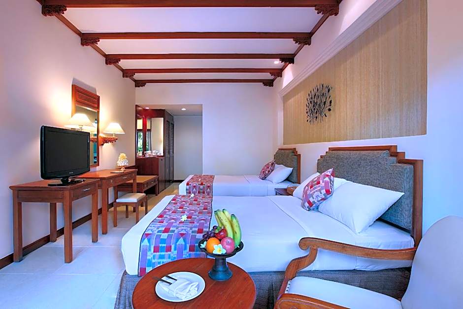 Bali Mandira Beach Resort & Spa is a 5-star resort in Legian, Indonesia, located just 0,3mi from the city center. The address is Jl. Padma2 P.O.Box 1003, Bali. Breakfast is offered, and the minimum price starts from £94. The property has 1092 reviews.